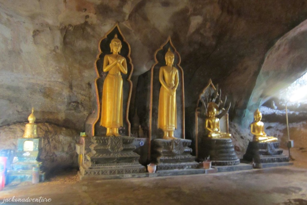 Monkey Cave Temple, locally known as Wat Suwan Kuha Temple, is located not far from Raman Waterfall National Forest. There is a dominant figure of a large reclining Buddha, a few small Buddha images and a big Chedi which contains the bones of the Na Takuathung family who governed this area about 160 years ago.