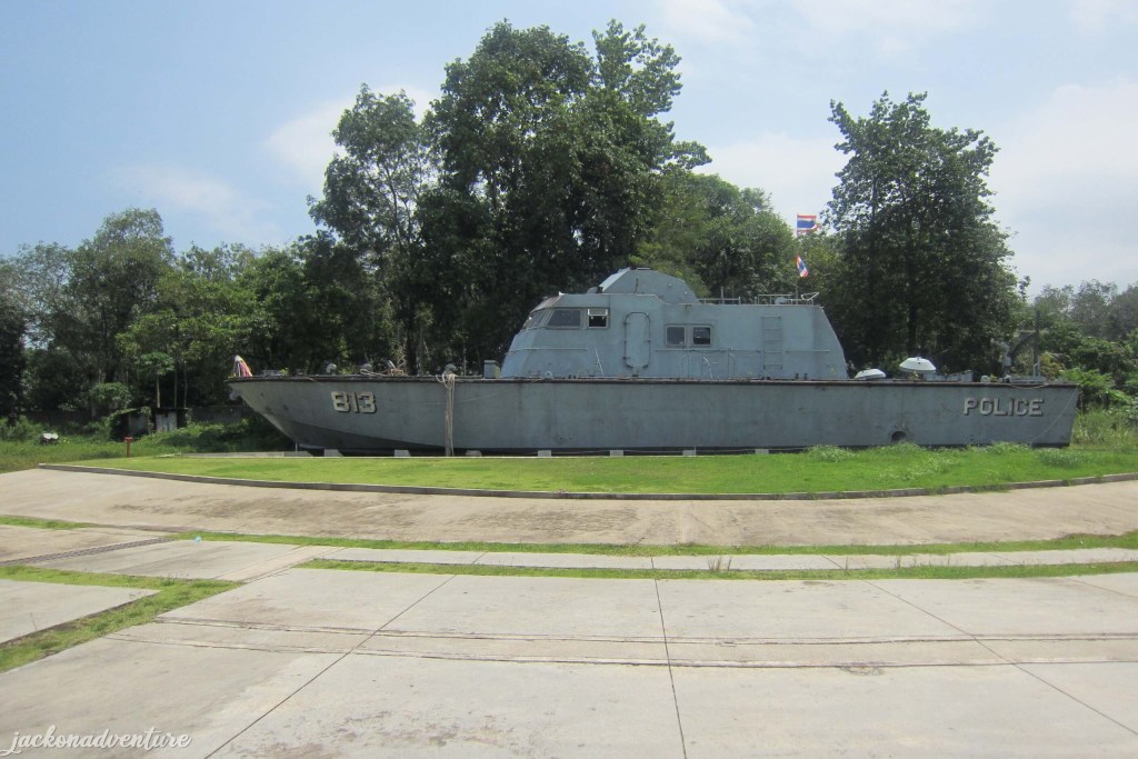 After the tsunami occurred, Thai navy boat 813 was washed almost 2 kilometers inland from Bang Niang Beach. It was on patrol, serving as a guard to a grandson of the king, Bhumi Jensen when he was jet skiing in front of La Flora Resort. He could not be saved from the powerful waves and only his mother, Princess Ubolratana and sister survived the incident by fleeing to the upper level of the resort.