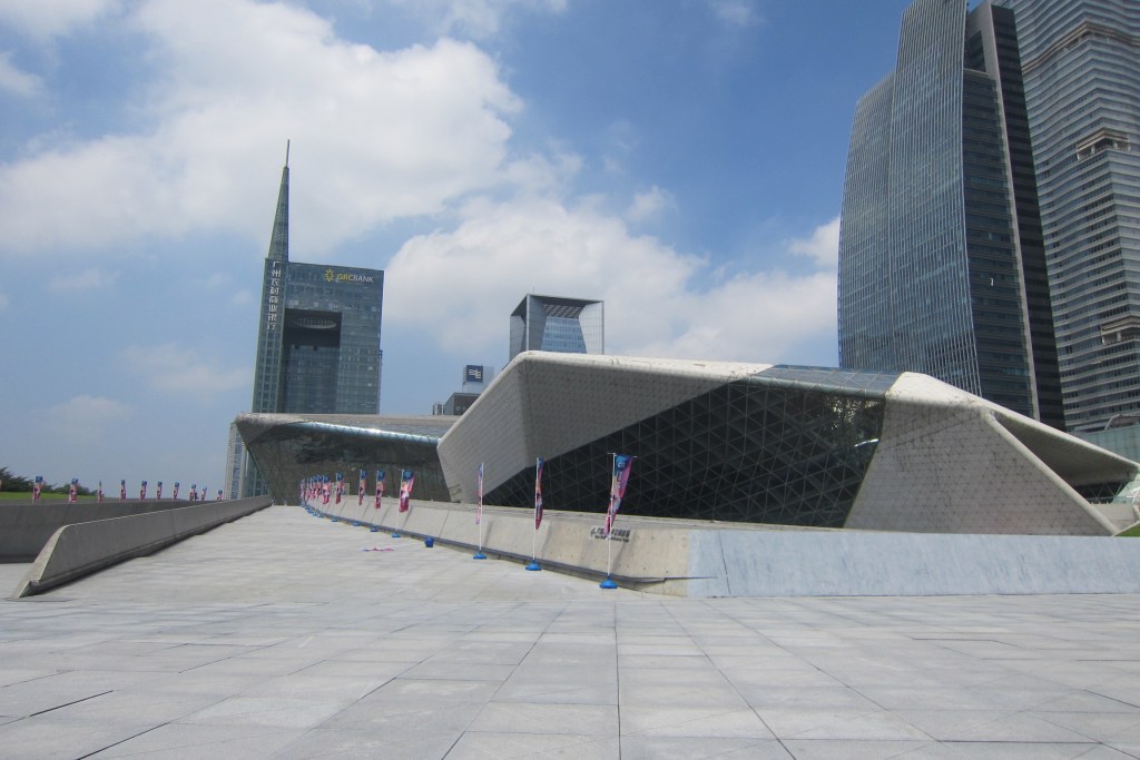 At the south side lies the four cultural venues named Guangzhou Opera House, the Second Children’s Palace, the Guangzhou Library, and Guang Museum. There is an underground shopping mall, vehicular tunnels and an automated people mover (APM) within the New Town.