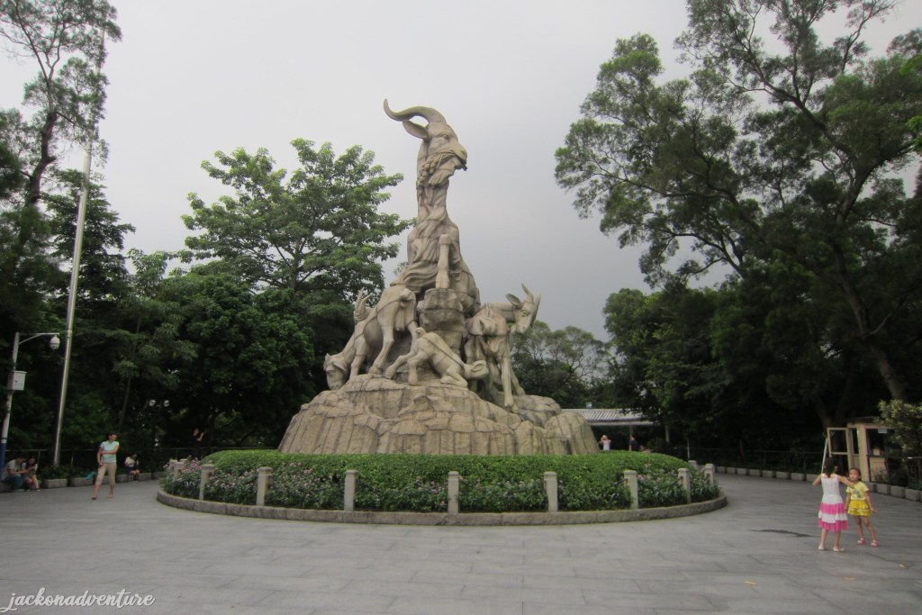 The statue is located in the park’s Wuyang Hill. According to local myth, it is said that once upon a time, there were five fairies riding on five goats. They flew to Guangzhou and brought five bunches of corn to the villagers and blessed them with everlasting fertility. They soon vanished into the sky, leaving the five heavenly goats and later turning into stone.