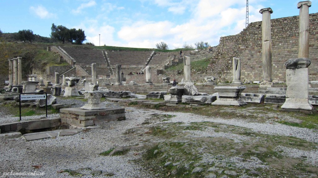 This open-air theatre (far right) was believed to be the largest in the ancient world with an estimated 25,000 seating capacity. It was originally used for drama performances, but later gladiatorial combats were held here as well during Roman times.