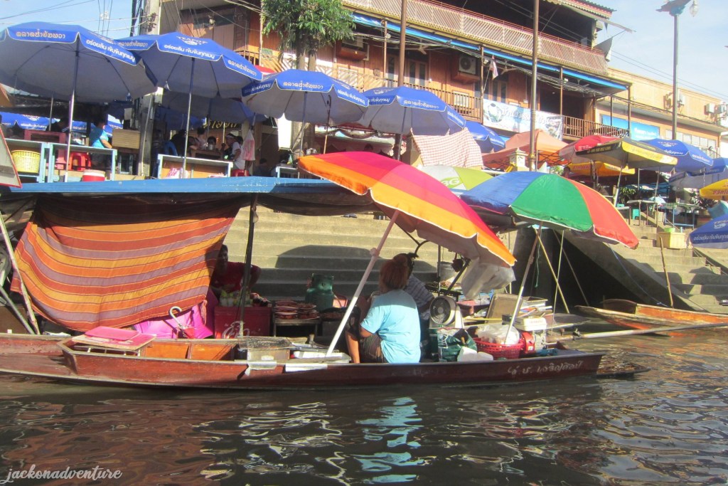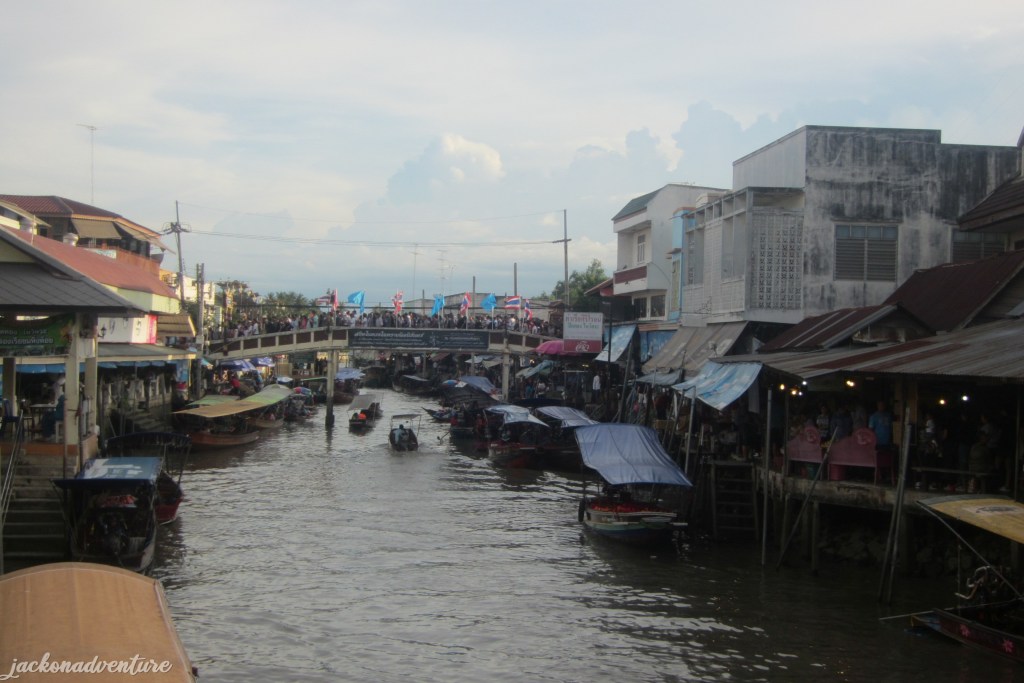 This is a canal-side market with boats paddling along the water selling various food and beverages. Those wooden houses are used as stores to sell all sorts of souvenirs, handicrafts and accessories.