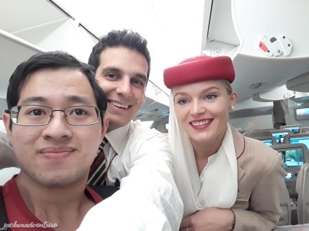 Me having a wonderful experience on this A380 and many thanks to the cool flight attendants who made my flight so comfy. And the next time I want to travel anywhere around Europe, I will most likely choose this airline because of its excellent quality of service and the friendliness of its crews. Thumbs up!!