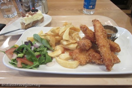 Unlike any cake with whiskey taste, this is one of the best I’ve ever had for a very long time. The whiskey has been blended smoothly into the cake and each bite I take can get the taste of the great whiskey. The meals just cost £14.50 (£8 for the chicken tender and £6.50 for the cake), which is a reasonable price.