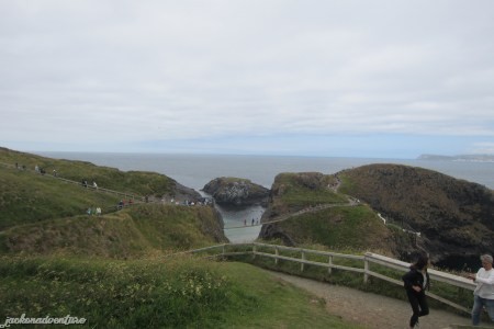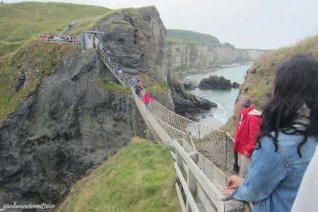 After lunch, we visit the Carrick-A-Rede Rope Bridge, about a kilometer from the parking area of the distillery. Back in the day, the rope bridge was made only with a single hand rope, swinging 100 feet above sea level. Yet, the fishermen crossed this 60-feet rope bridge to carry their salmons and fishing gears without fear with the use of only one hand to guide them over.
