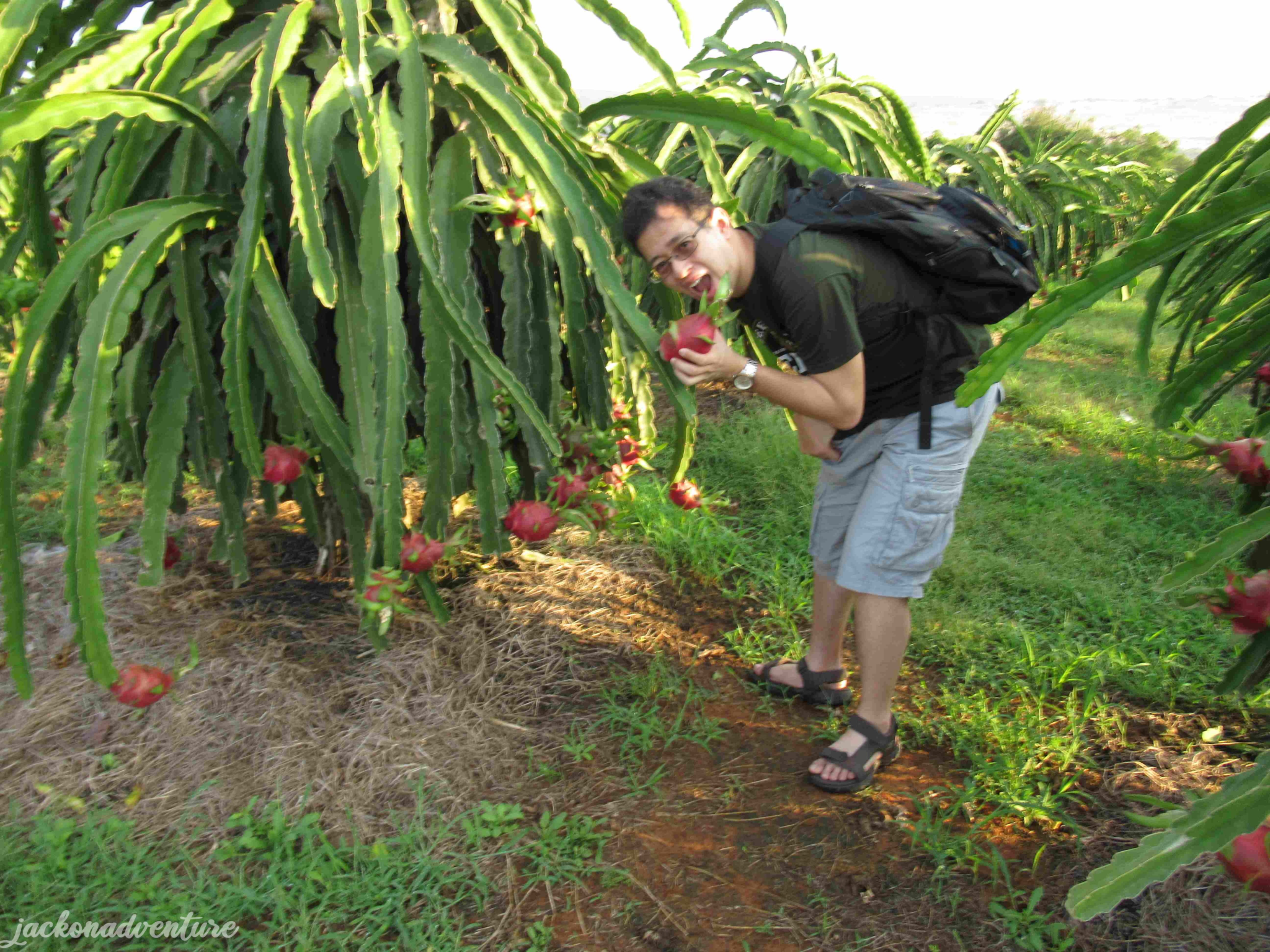 Before heading to our next point, we make two unexpected stops. Firstly, we stopped by a dragonfruit plantation. The plantation was not fenced, so we got a chance to have a closer look at these full-grown fruits.