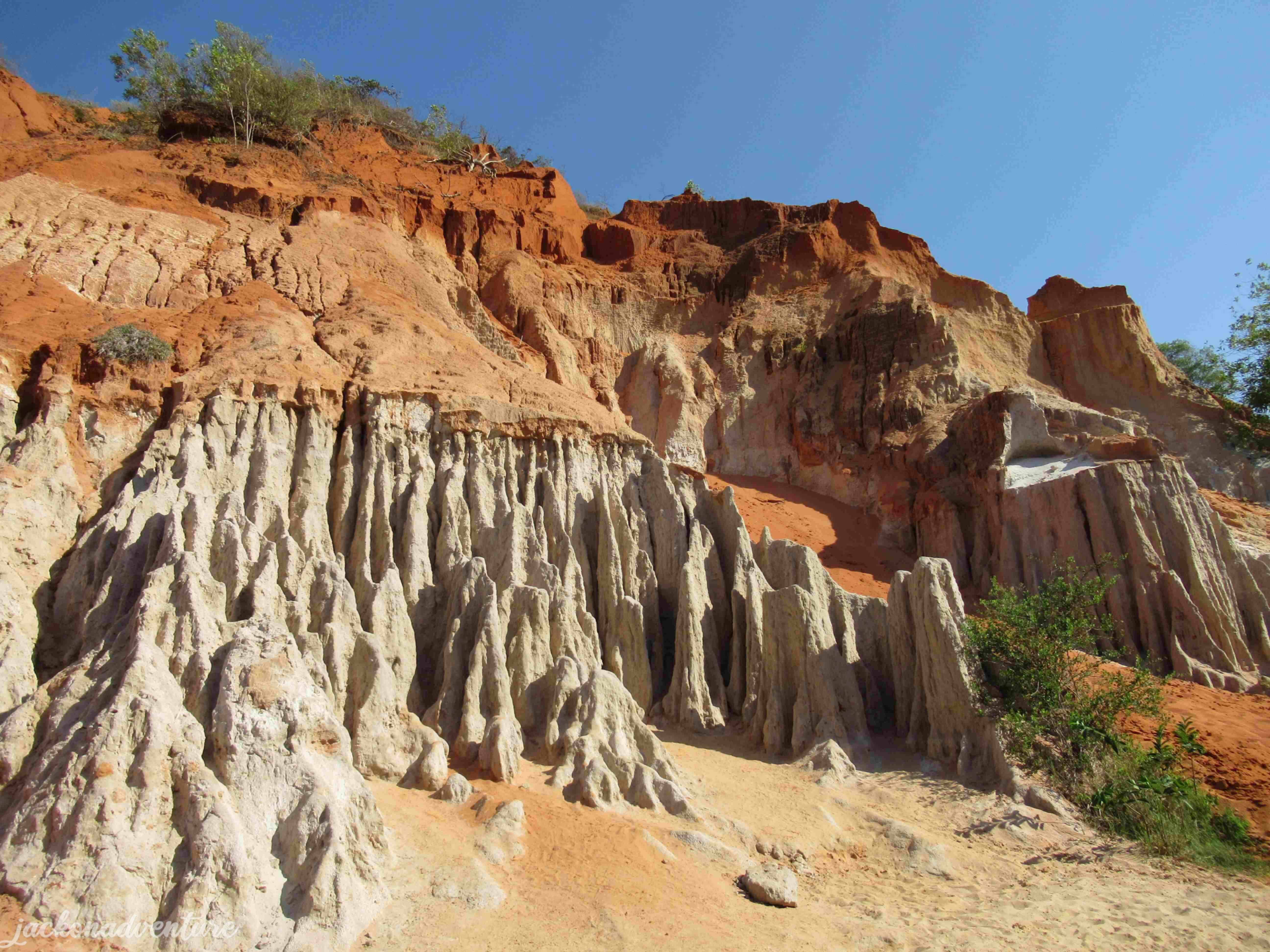 My last stop of the tour is Fairy Stream, where the water flows alongside impressive rock and sand formations before reaching the sea just a few hundred meters down. The water is vivid red, formed by clay and limestone particles and mixed with pale white sand which forms a soft red creek. You will see the rock formation on one side and big bushes on the opposite side.