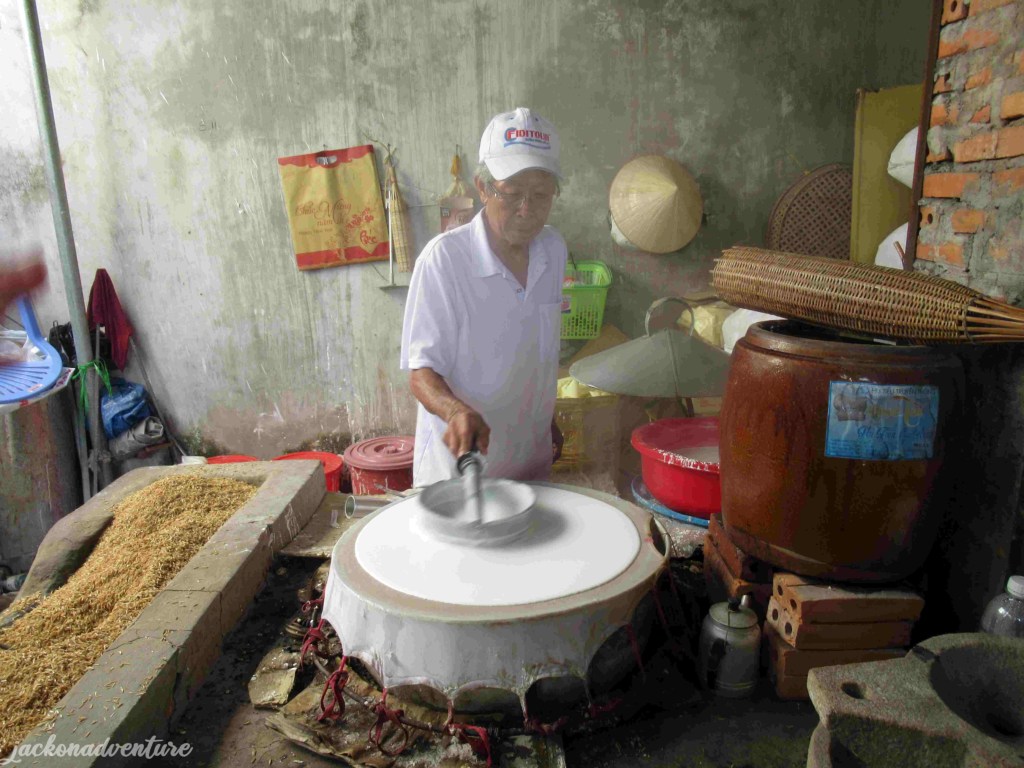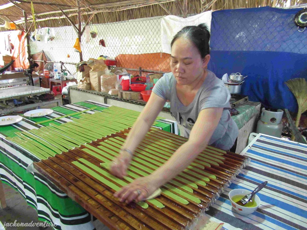 We took the next five minutes boat ride to some stilt houses before getting to a noodle and paper rice factory on foot. Here, we get to observe how the worker made the paper rice from scratch.