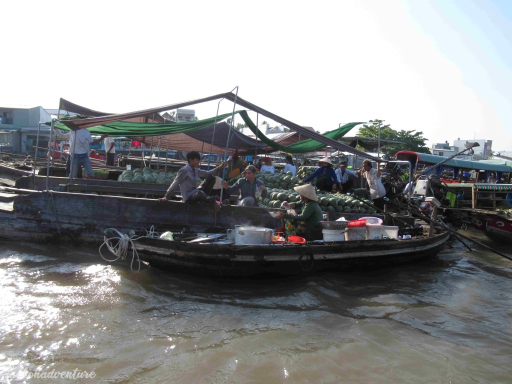 It was a sunny morning and it was the opportunity to watch the local people living in Mekong Delta get into their daily routines. A fruit supplier was loading their goods into the vendor’s boat before selling them to locals and tourists. Some fishermen were busy moving their catch to their distributors in smaller boats before carrying their loads into the docks.
