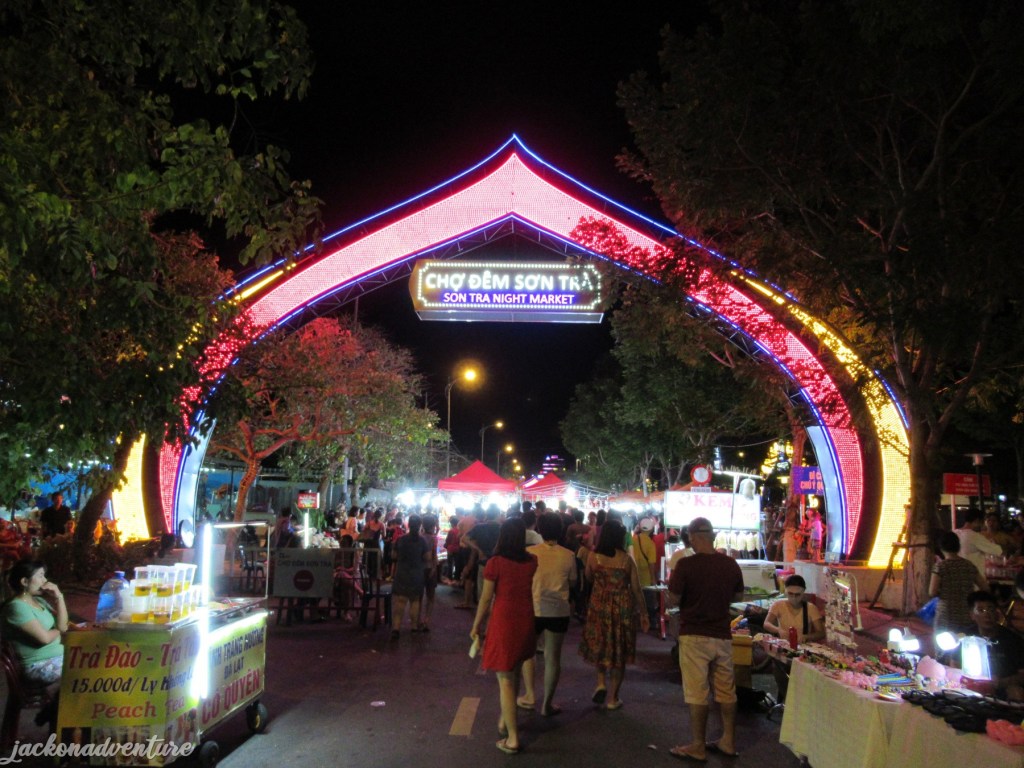 Walk down the busy Son Tra Night Market to try some local food. I enjoy the delicious broken rice sold at one of the street stalls. This Vietnamese dish is served with rice, pork ribs, tomato, cucumber, egg, and dressing.