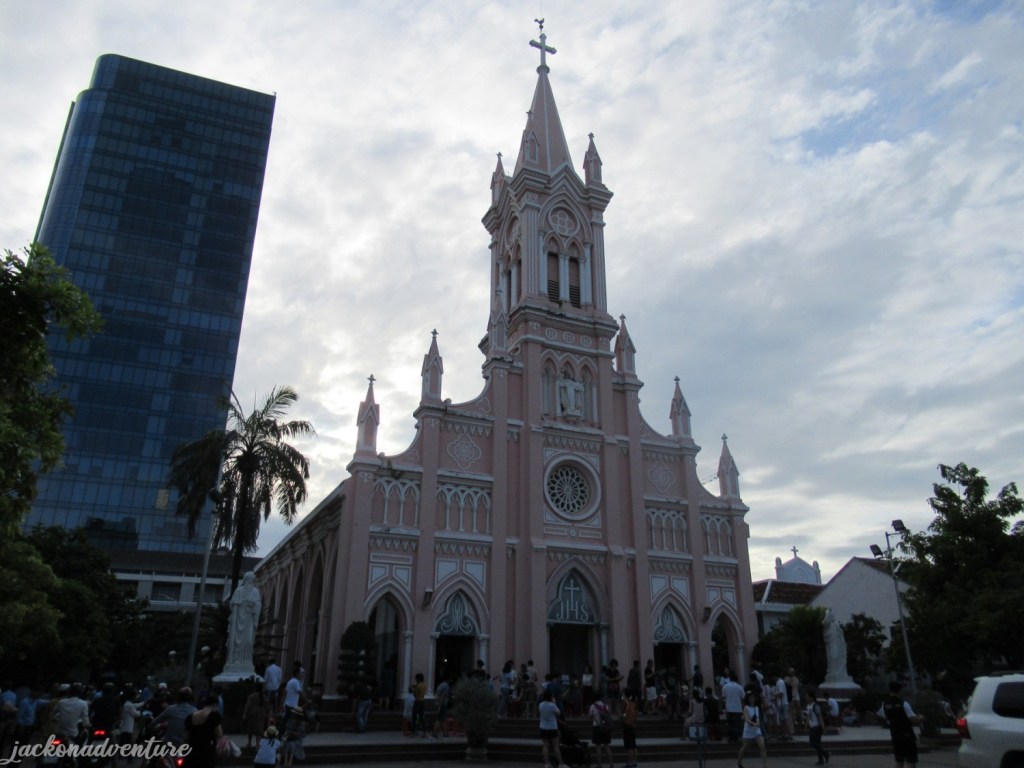 This unique pink-painted Danang Cathedral was built by French priest Louis Vallet in 1923. Standing at 70 meters tall, this catholic church is known as Con Ga Church (Rooster Church) due to the imposing bell tower with a rooster weathercock on top. As it was Sunday afternoon, I got to see its people perform mass prayer here.