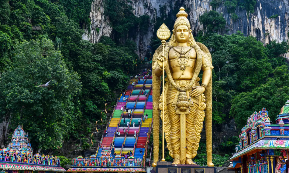 Situated 13 km away from Kuala Lumpur, Batu Caves is one of the most popular Hindu shrines outside India and is dedicated to a Hindu deity, Lord Murugan. When arriving at the foot of the temple, you will be greeted by the world’s tallest 42.7 m tall Murugan statue, which is made from 1,550 cubic meters of concrete, 250 tons of steel bars and 300 liters of gold paint.