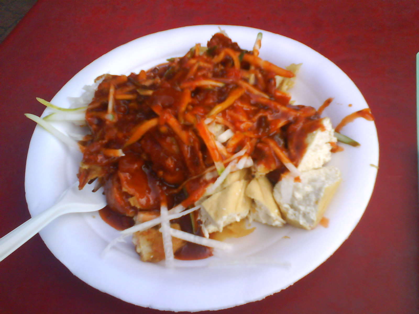 - Pasembur or Rojak Mamak: salad comes with shredded cucumber, potatoes, bean curd, turnip and bean sprouts, either with prawn fritters, spicy fried crab, fried squid or other seafood. It is topped with sweet and spicy nut sauce.