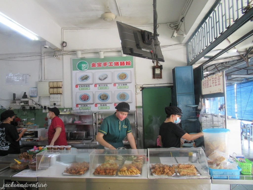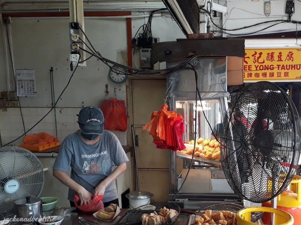 Sink your teeth into the crispy crust and be filled with the tasty grade D24 durian flesh that tastes sweet and bitter. The thick layer of batter is put onto the warm durian flesh to retain its creamy texture and its natural flavors from the boiling hot oil. The hot steam brings out the strong aroma of the durian into the mouth and nose. The store also sells fried rice cake with sweet potato and yam, banana puffs, and deep-fried jack fruit.