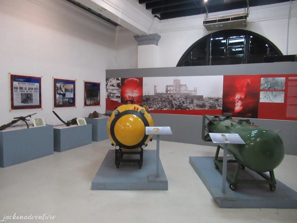 The museum showcases exhibits related to World War II, including a Japanese bicycle, weapons, articles. documents and the duplicated atomic bombs, and the story of national spirit and struggle to gain independence for the country. There are also photographs, old furniture, and antiques dating back to the early 1930s on the second floor.
