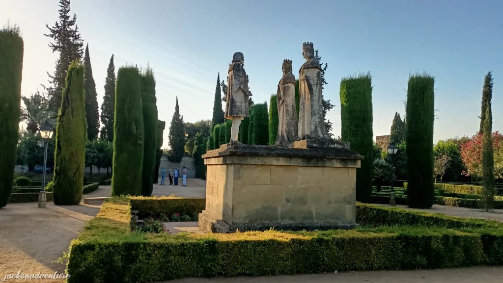 The King’s Walk (El Paseo de los Reyes has several sculptures of the kings who built the Alcázar and another represents Christopher Columbus commemorating his first meeting with Queen Isabella and King Ferdinand (above picture).