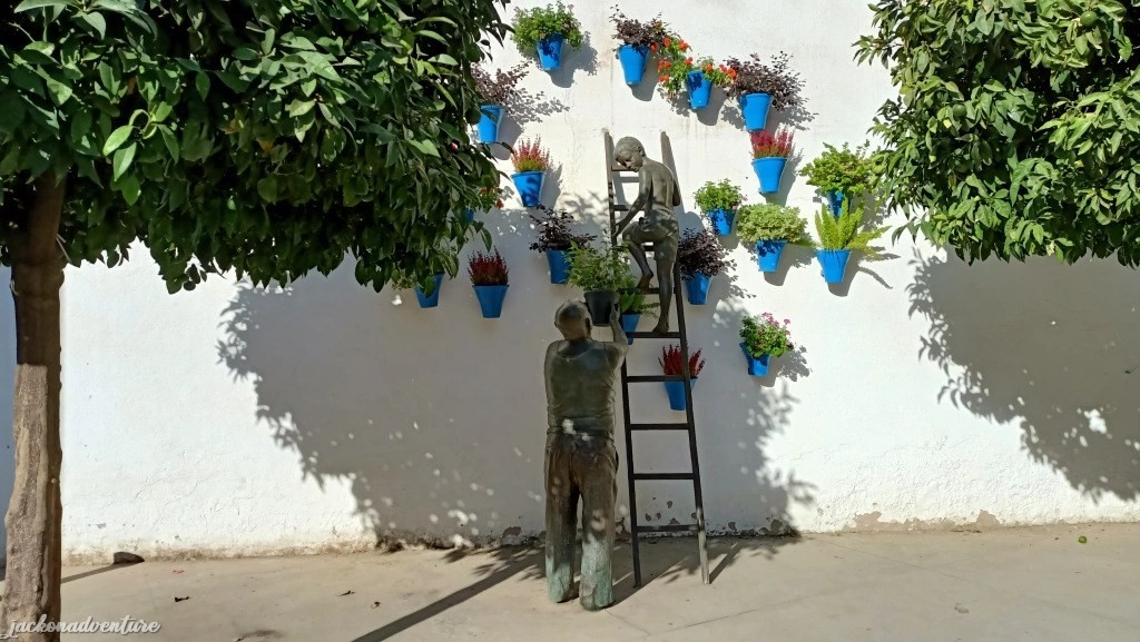 A sculpture of a grandfather and his grandson, working together to decorate the patio garden can be found in San Basilio. The bronze statue was designed by Jose Manuel Belfonte to honor the important tradition of the Cordoba patios that passed from one generation to the next for more than a century.
