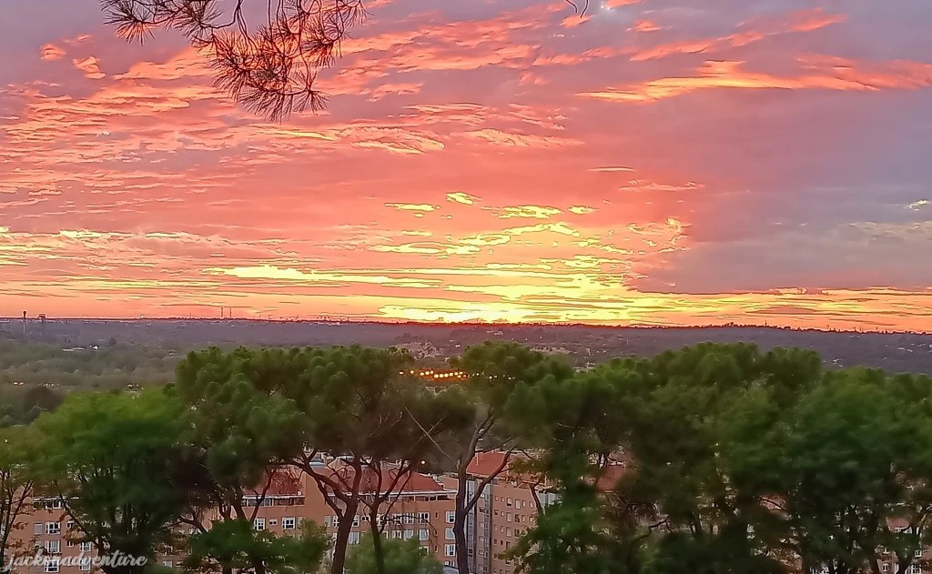 Montaña Park is the best place to hang out and watch the stunning sunset in Madrid. The park offers amazing views overlooking the Royal Palace, Almuneda Cathedral, and Casa de Campo. It is surrounded by tall shady trees and you can relax or have a picnic on the green lawn or wooden bench.