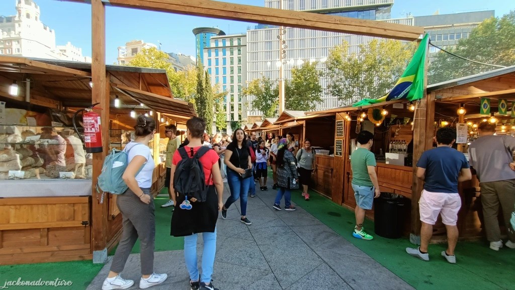 During my tour in Madrid, an international food festival was held in the plaza. People came here to taste a variety of food from all over South America and attended a small outdoor concert.