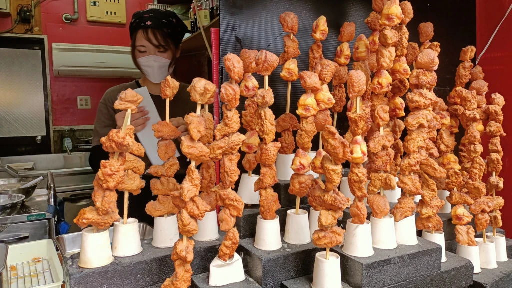 Just a close approximation from Tenryu-ji Temple, Sagatenryuji Tateishicho is lined with small eatery shops selling street food. Here, you can sample variety of Japanese snacks and desserts at an affordable price, including fried tofu, karage chicken, buttered taiyaki (consists of sweet mashed red bean), sweet soy sauce mochi, baked sweet potatoes, ice cream and strawberry parfait.