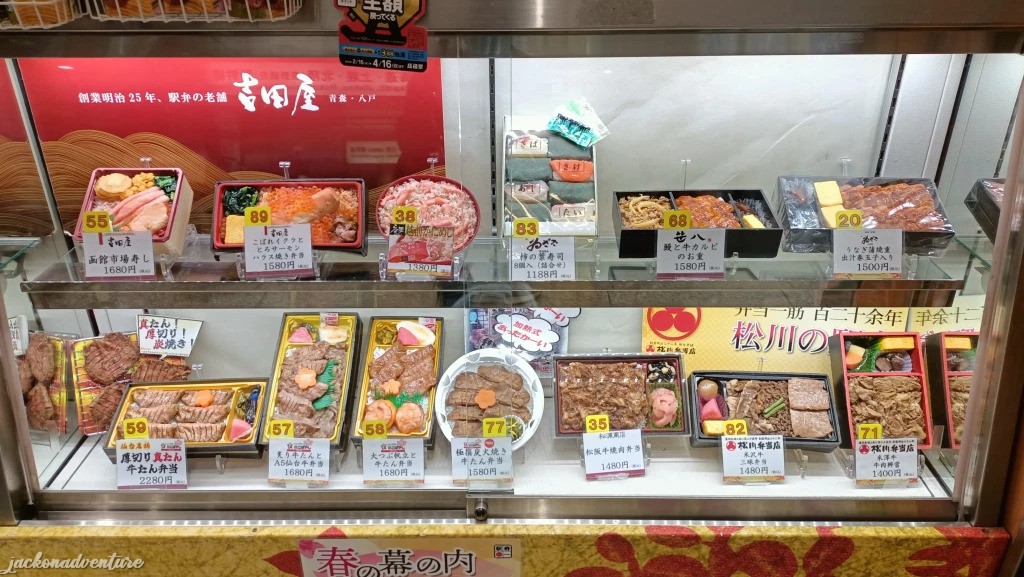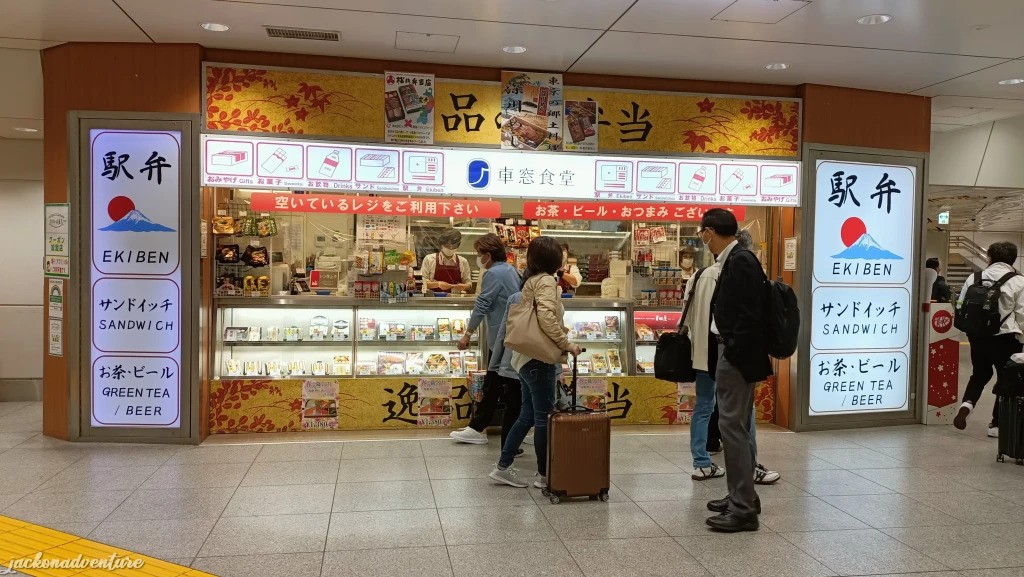 These ekiben shops can be found throughout major stations in Japan. They sell bento boxes (packed lunch), sushi, sandwiches, drinks and even sake! The food is well prepared, packed in a box and ready to eat right away onboard the Shinkansen.