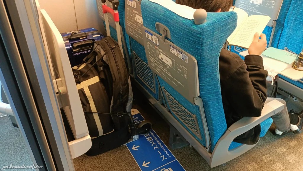 There is a storage area at the back of the train carriage to store “oversized baggage” over 160 cm. The NEW RULE now requires passengers to make reservations for a designated seat if traveling on Tokaido, Sanyo or Kyushu Shinkansen with a piece of luggage measuring more than 160 cm. Reservations for these designated seats can be made at “Midori no Madoguchi” at all major train stations.