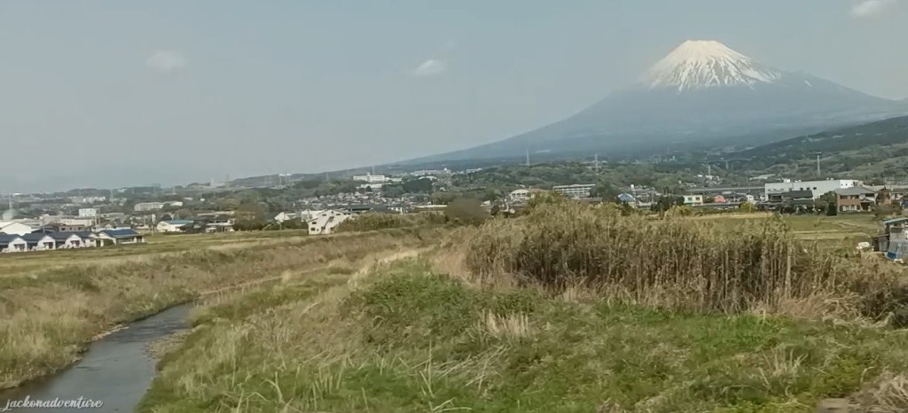 It takes about 45 minutes from Tokyo Station or 38 minutes from Shinagawa Station before the train passes Mishima Station in Shizouka prefecture to come across the stunning view of the sacred mountain.