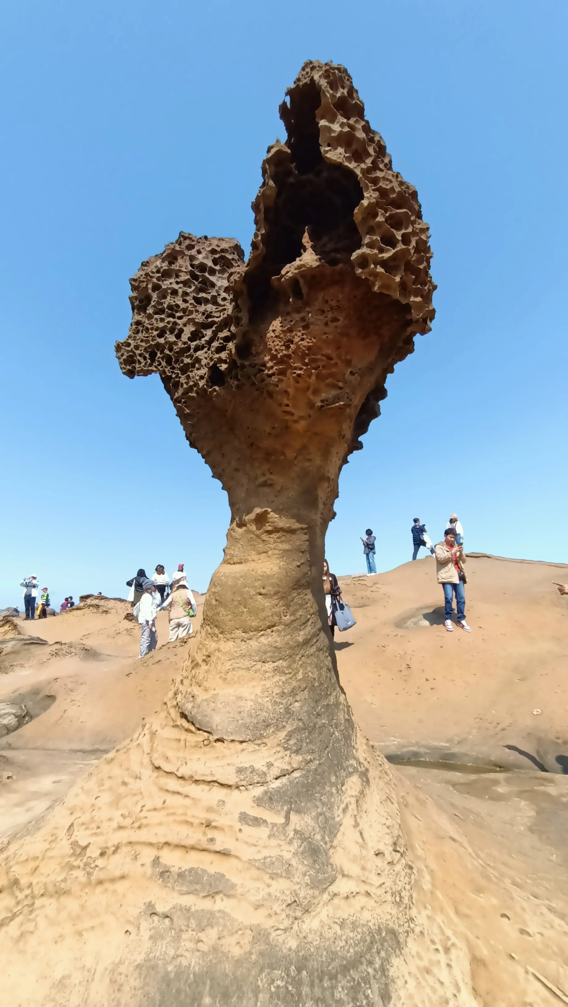 Yehliu Geological Park (野柳地質公園) is a reserve within a 1.7 kilometers stretch of the cape on the north coast of Wanli district in New Taipei City. It is home to these extraordinary mushroom-like rock formations naturally formed by the winds and water erosion many centuries ago.