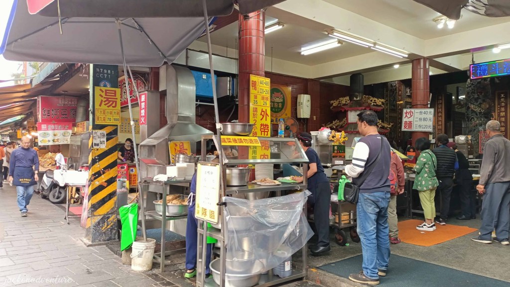 Located outside the temple is the store selling one of the most famous duck meat in Taiwan. When I was exploring Jinshan Old Street, it made me wonder why so many people are walking back and forth between the streets, carrying plates of food. Only later did I realize the store is situated outside the temple.