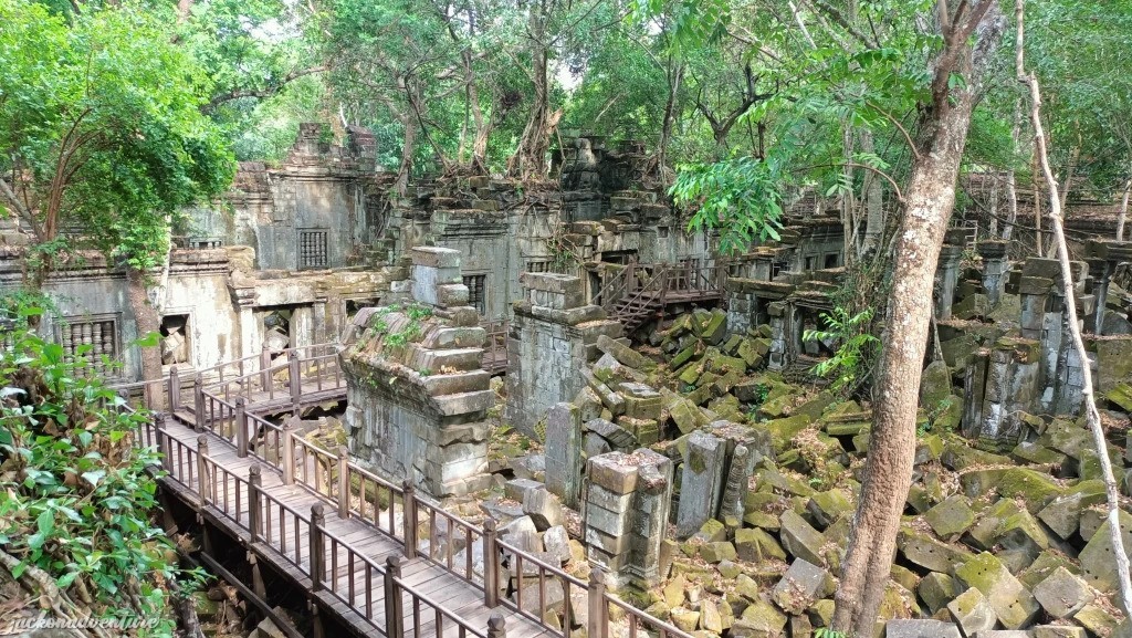 Beng Mealea known as “Temple of Lotus Pond” is an unrestored temple located 40km away from the main Angkor temples. The history of the temple remains unfold with little discovery has been done so far. It is only presumed to be built in the early 12th century based on its identical architectural style to Angkor Wat.