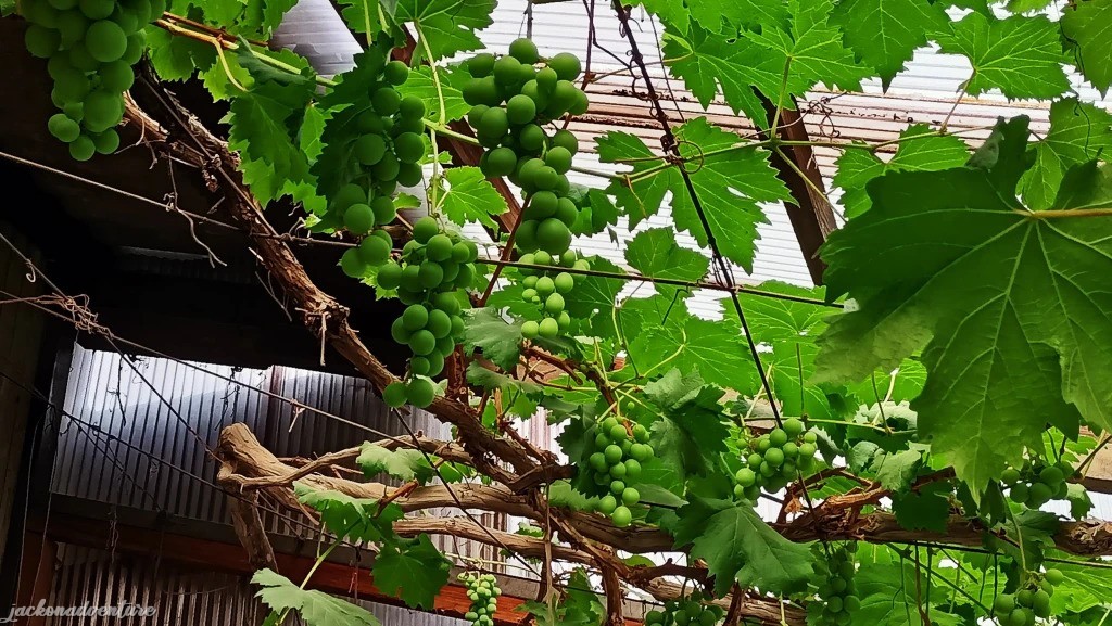 The host owns several greenhouses mainly growing grapes with some watermelons, kiwis and eggplants near his house. The grapes were only half-grown when I was there and ready for harvesting in mid-September. Therefore, the WWOOFers and I mostly spent most of our days weeding in the greenhouses and the garden. In the first week, we also assisted the host in constructing the podiums to plant kiwis.