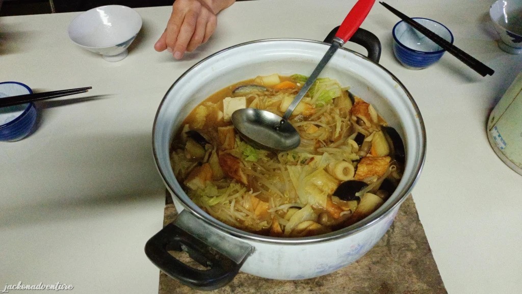 Nevertheless, the host prepared some delicious dishes on special occasions such as pizza and the so-called traditional Chanko-nabe. This Japanese dish is usually eaten by sumo wrestlers in vast quantities as part of their weight gain diet which contains chicken, pork, vegetables, tofu and mushrooms.