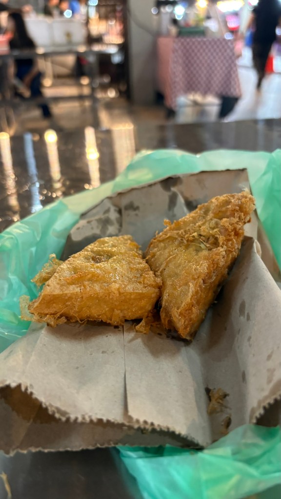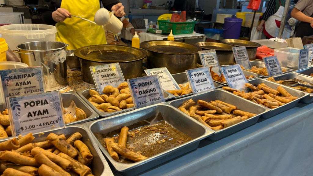 Other delicacies found in Gadong Night Market are a variety of fried popiah (vegetarian, chicken, prawn or beef), Tauhu (fried tofu with vegetable or beef), barbeque fish, Bosko Brunei and different type of Malay kuih.