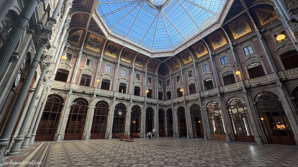 The Neoclassical and Moorish-style building was built between 1842 and 1910 to impress European investors. It is home to the magnificent glass-domed Hall of Nations (PƔtio das NaƧƵes), which allows sunlight to illuminate the beautiful mosaic flooring.
