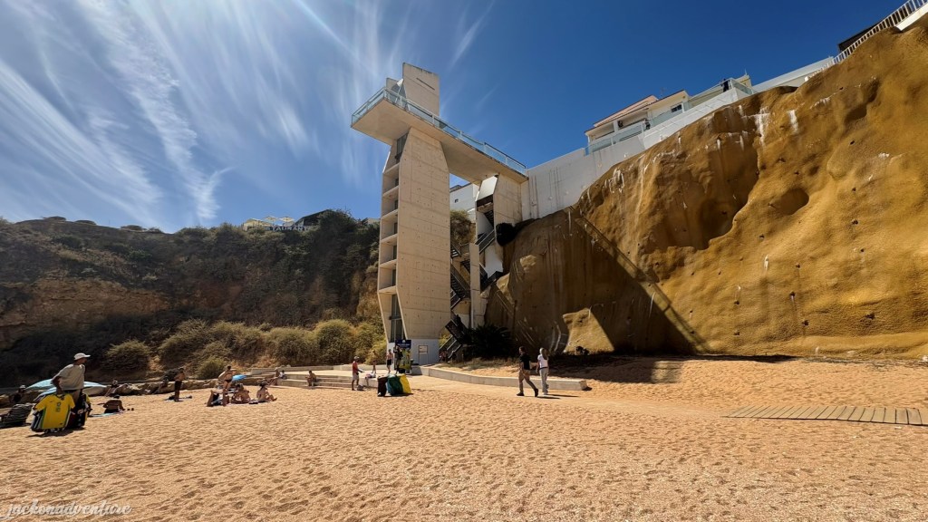 Thanks to the Elevador do Peneco, you can take this impressive glass elevator to the top. There is a viewing platform to enjoy spectacular views of Praia de Pescadores. It also save you the hassle of walking up or down the flight of stairs if you are carrying your beach equipments.