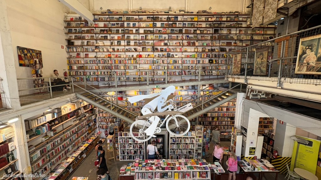 One place you absolutely shouldn’t miss is the famous Ler Devagar Bookstore– one of the coolest bookstores in Lisbon. It is set inside a former printing shop, the space is nothing short of magical- books are stacked up to the ceiling and the old printing press still kept on the upper floor.