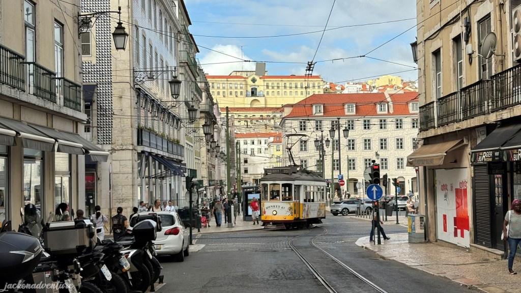 Travel Tips: Instead of waiting in a long queue with these silly tourists, walk toward Rua do Carmo behind the lift. Keep going until you spot a small blue sign above a narrow passageway. Take the stairs to a church and turn right. Take another set of stairs from Casa Pastel Portuguesa do Pastel de Bacalhau. And walah, you will reach the same viewing platform for free and skip one of the biggest tourist traps in Lisbon. You can later spend those €5 to treat yourself to a pastel or a pint of BEER!