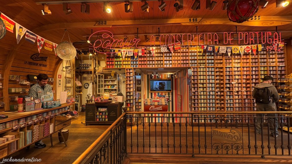 I was instantly drawn to the shop by its Instagrammable shelves, stacked with colorful tins wrapped in retro-style packaging. The variety is impressive- sardines, mackerel, tuna, octopus and sea bass- with prices ranging from €12 to €30.