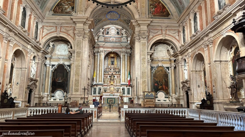The Church of the Italians was built by King John V in 1518 for the Italian merchants. It is dedicated to “Our Lady of Loreto”, patroness of the most ancient Marian Sanctuary of Italy.” The patron’s large stone statue can be seen from the finial of the main façade and flanked by two angels.